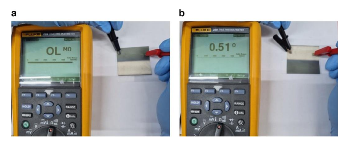 圖2所示。UV固化(a)和(b)光子燒結后納米銀基電極的電阻