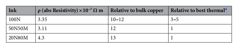 銅可能為印刷電子電路中的銀提供具有成本效益的替代品,可用于醫(yī)療保健,太陽(yáng)能,物聯(lián)網(wǎng)設(shè)備和汽車(chē)應(yīng)用中的各種應(yīng)用。銅面臨的主要挑戰(zhàn)是它在燒結(jié)過(guò)程中容易氧化成不導(dǎo)電狀態(tài)。光子燒結(jié)提供了一種克服氧化的方法,通過(guò)這種方法可以從離散的納米微粒子迅速轉(zhuǎn)化為完全或部分燒結(jié)的產(chǎn)物。FTO鍍膜玻璃上進(jìn)行了混合納米銅和混合納米/微銅厚膜絲網(wǎng)印刷結(jié)構(gòu)的閃光燈燒結(jié)實(shí)驗(yàn)研究。結(jié)果表明,可能存在多個(gè)能量窗口,可以成功地?zé)Y(jié)厚膜銅印,防止有害的銅氧化。在最佳條件下,在1秒內(nèi)獲得的電導(dǎo)率為(3.11-4.3×-10-7Ωm),與在250℃還原氣條件下90分鐘獲得的電導(dǎo)率相當(dāng),顯著提高了生產(chǎn)率并降低了能源需求。同時(shí)也表現(xiàn)出良好的薄膜穩(wěn)定性,100n材料的線電阻增14%50N50M墨水增加10%左右,20N80M墨水僅增加2%左右。